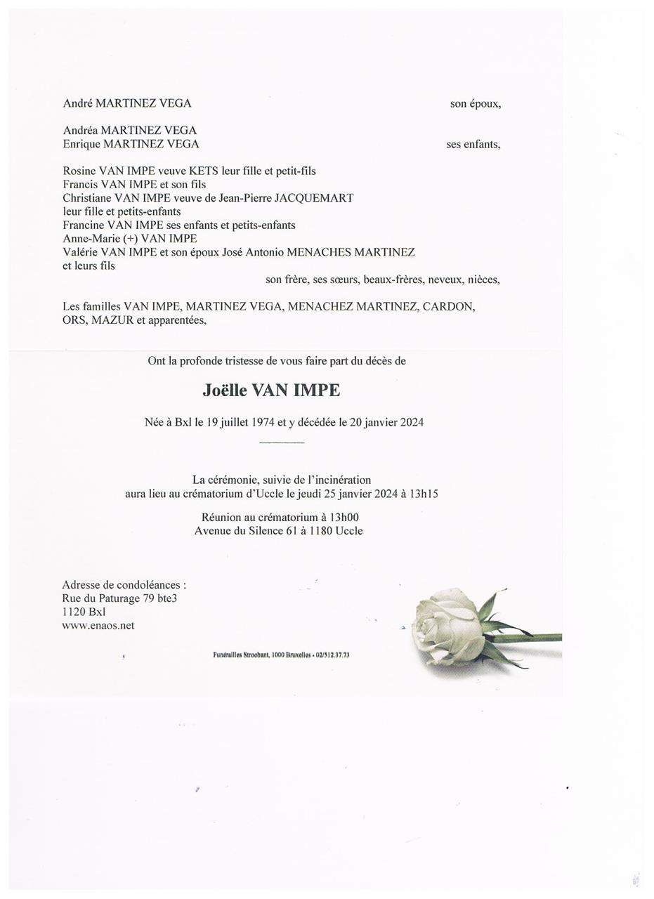 Décédée à Bruxelles (1000) le samedi 20 janvier 2024 à l'âge de 49 ans