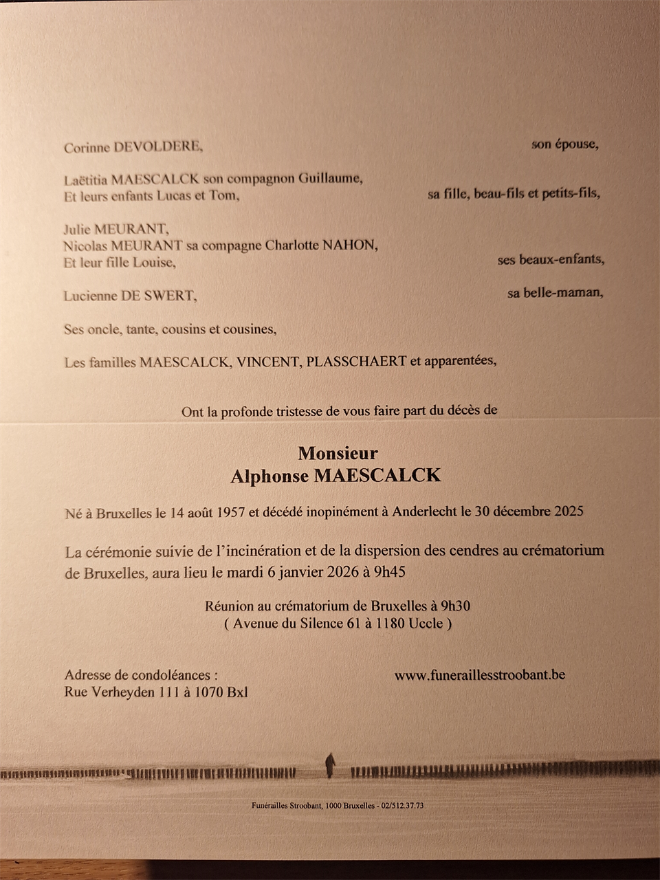 Décédé à Bruxelles (Anderlecht) (1070) le mardi 30 décembre 2025 à l'âge de 68 ans