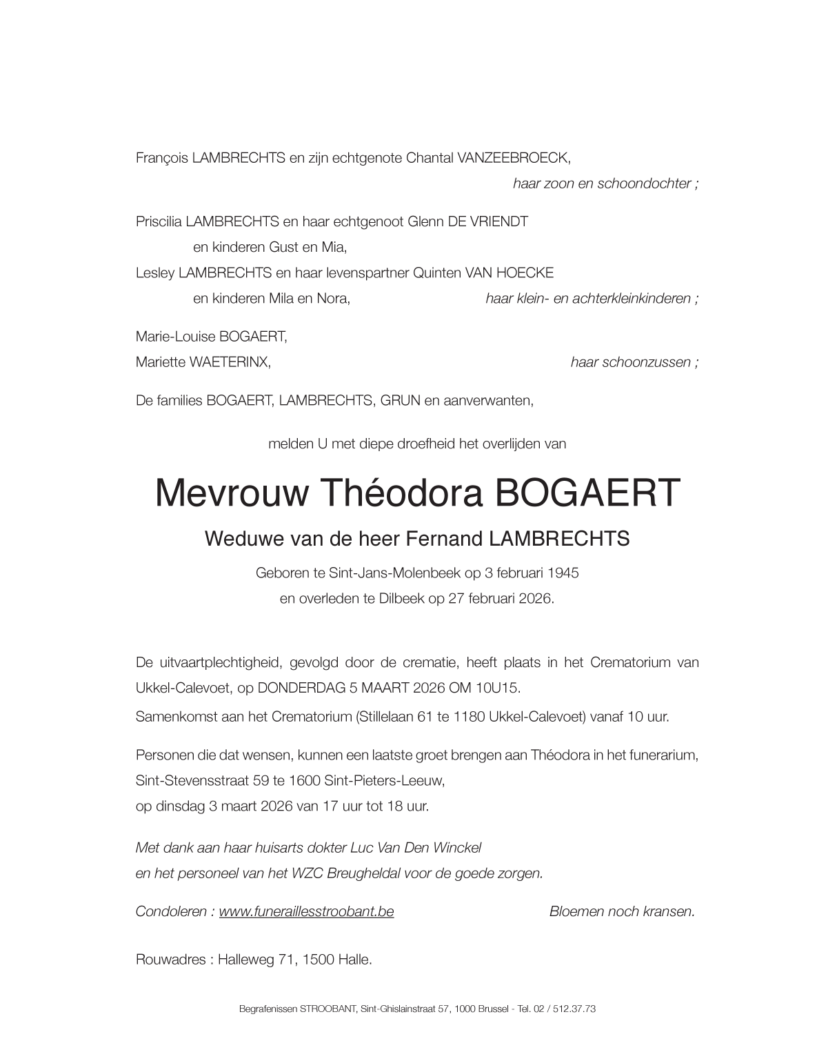 Veuve de Monsieur Fernand Lambrechts